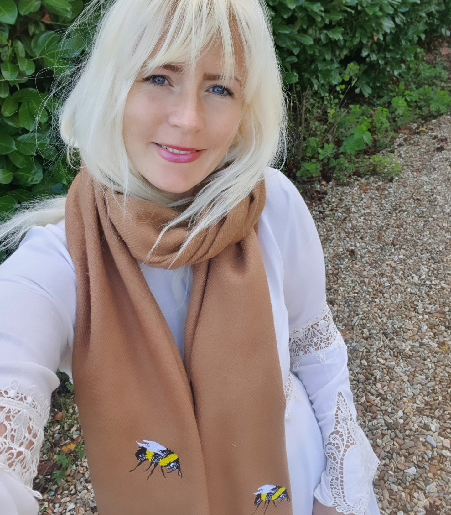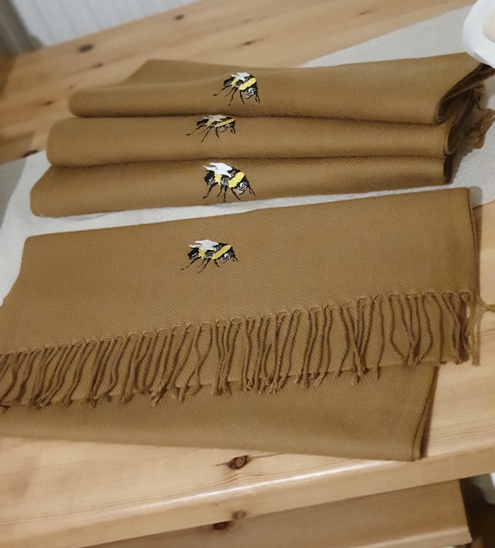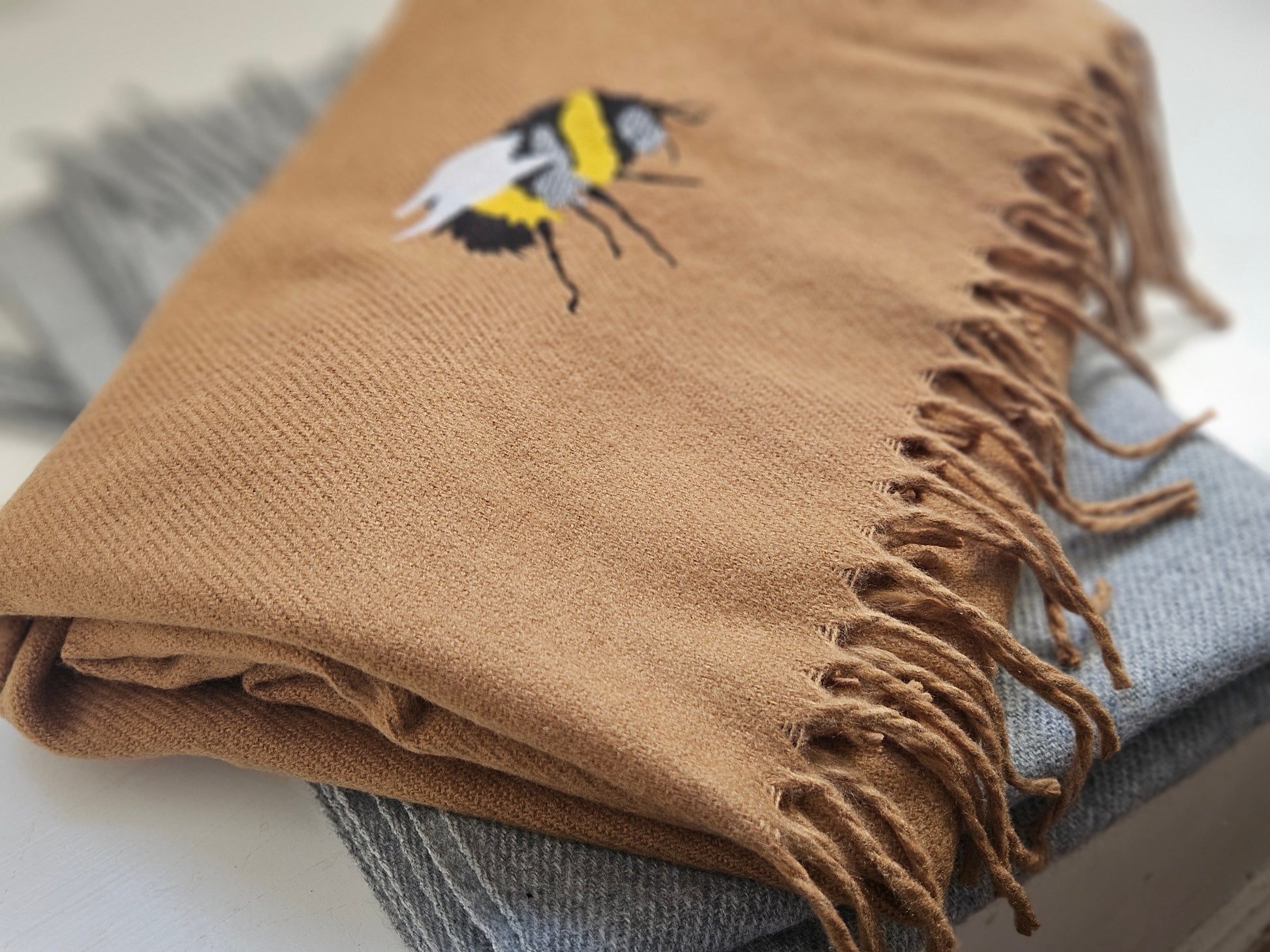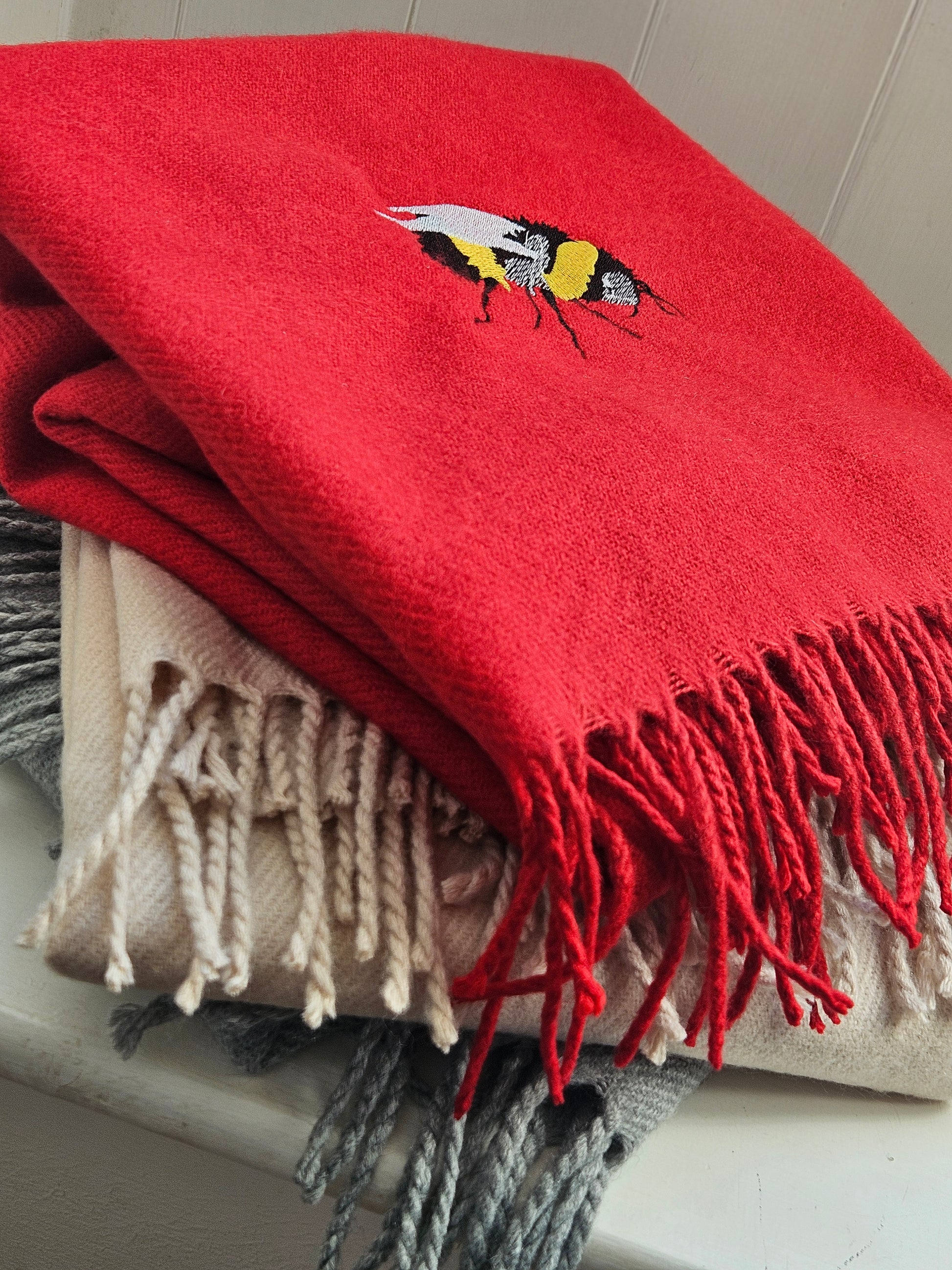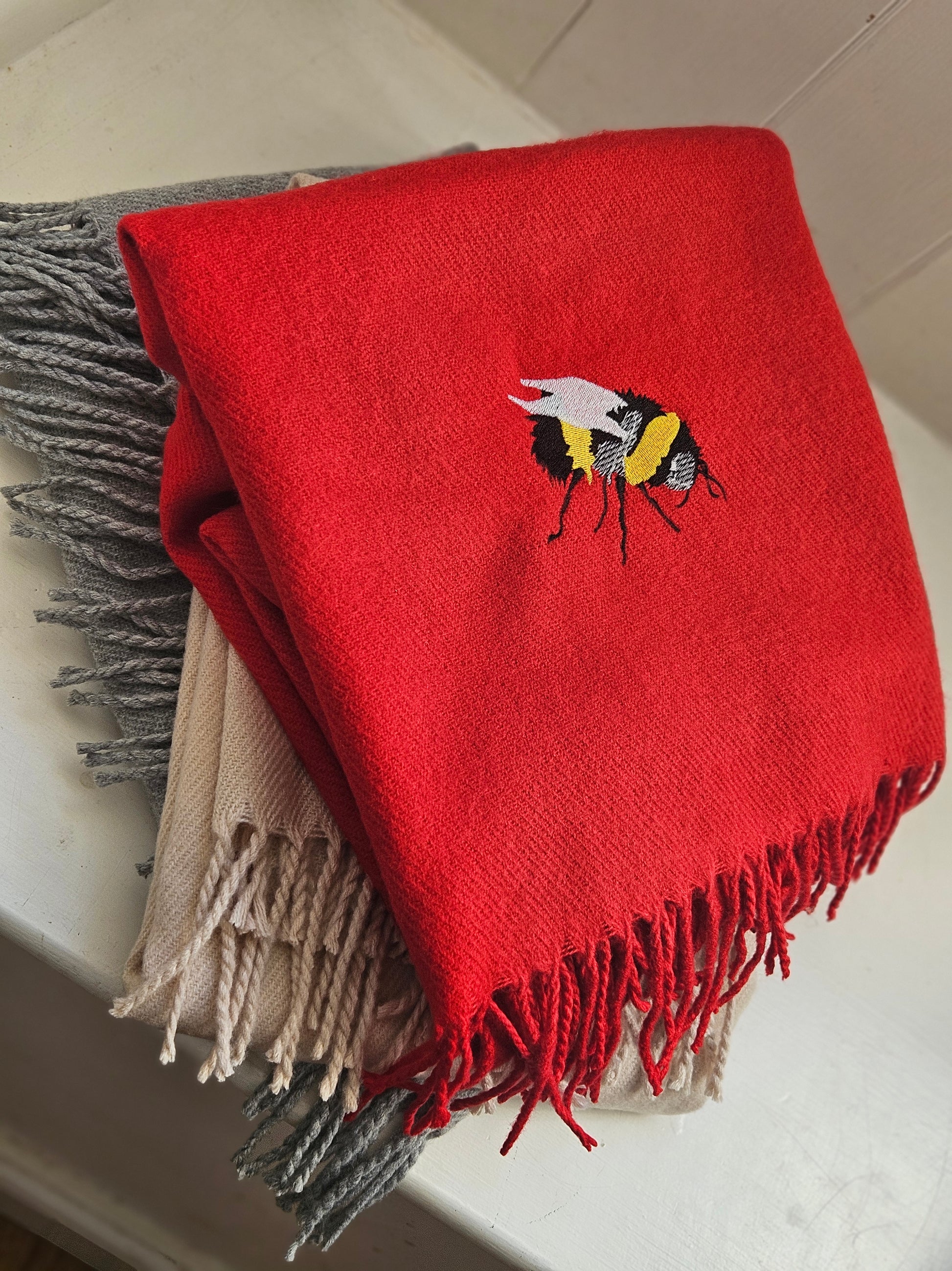 Katrina Cooke Love my bee 🐝 red scarf 🧣, softness and feel and wear daily . Have a mint green coat too so festive colours and get compliments and ask who did my bee 🐝 scarf . Love , love 🥰 ♥️