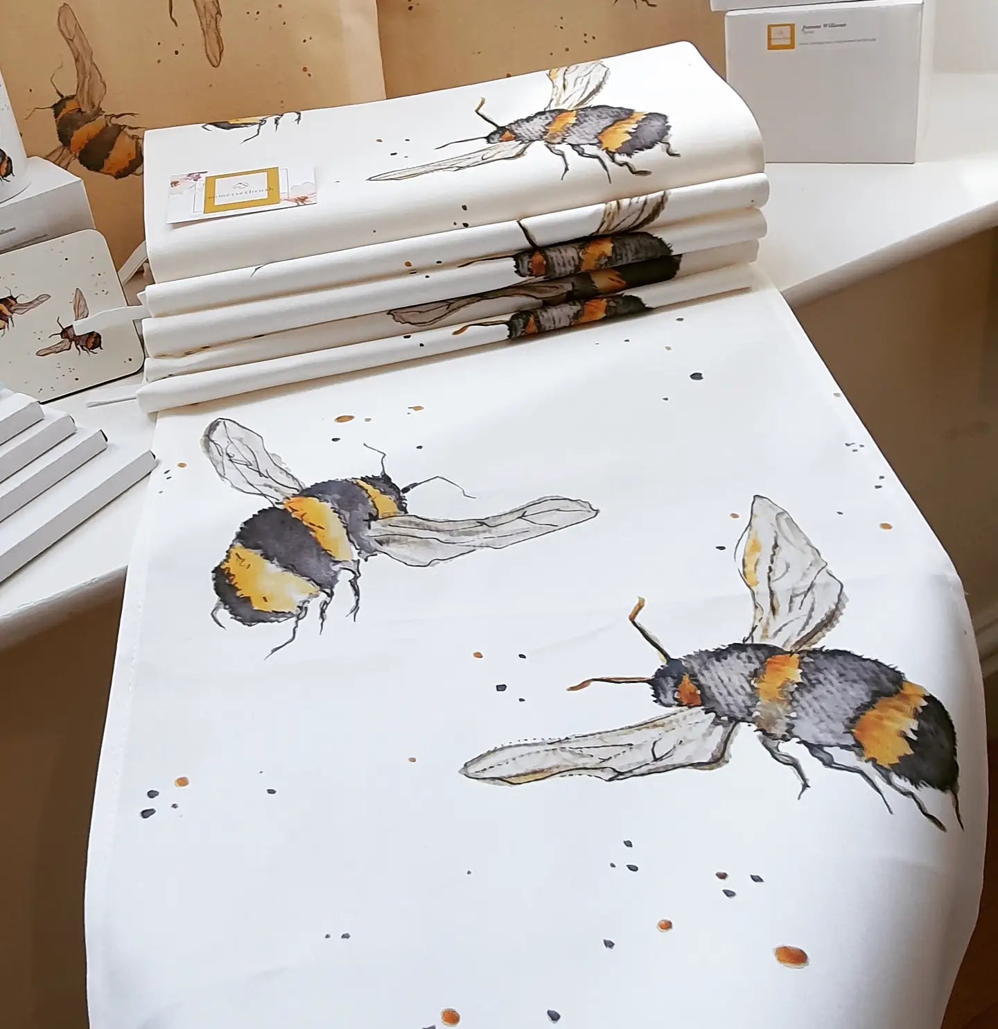Packaged Bumble Bee Tea Towel with Original Double Bee Print. One Size