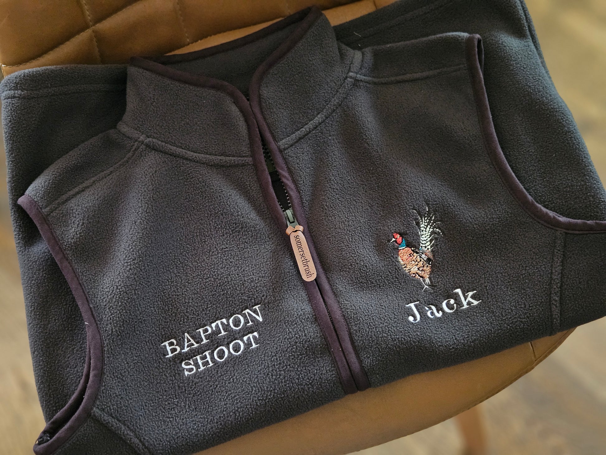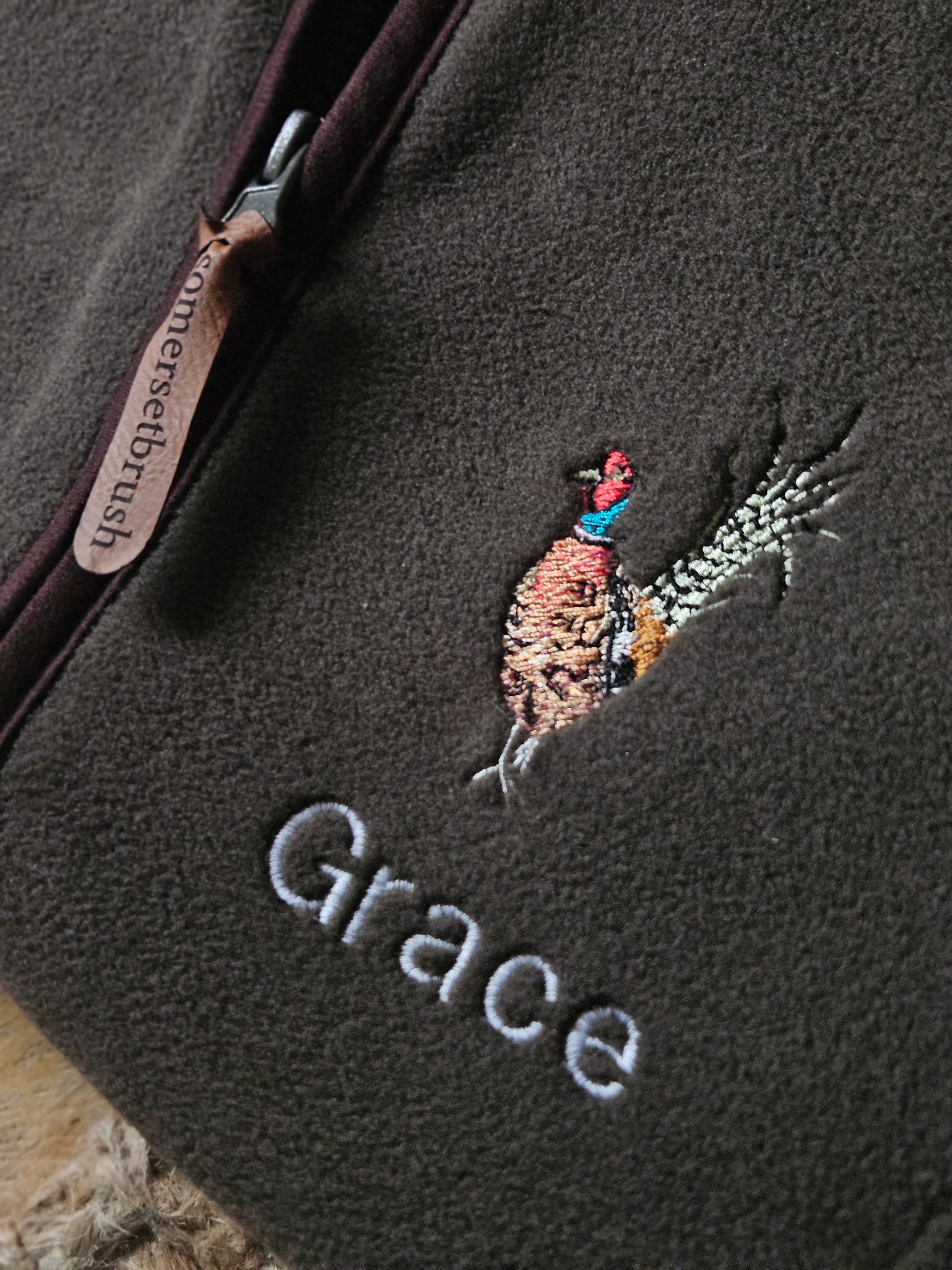 You can have a name embroidered underneath the pheasant for an additional cost or a shoot name/company on the opposite side. Please email any text you would like with your order number to : Somersetbrush@gmail.com