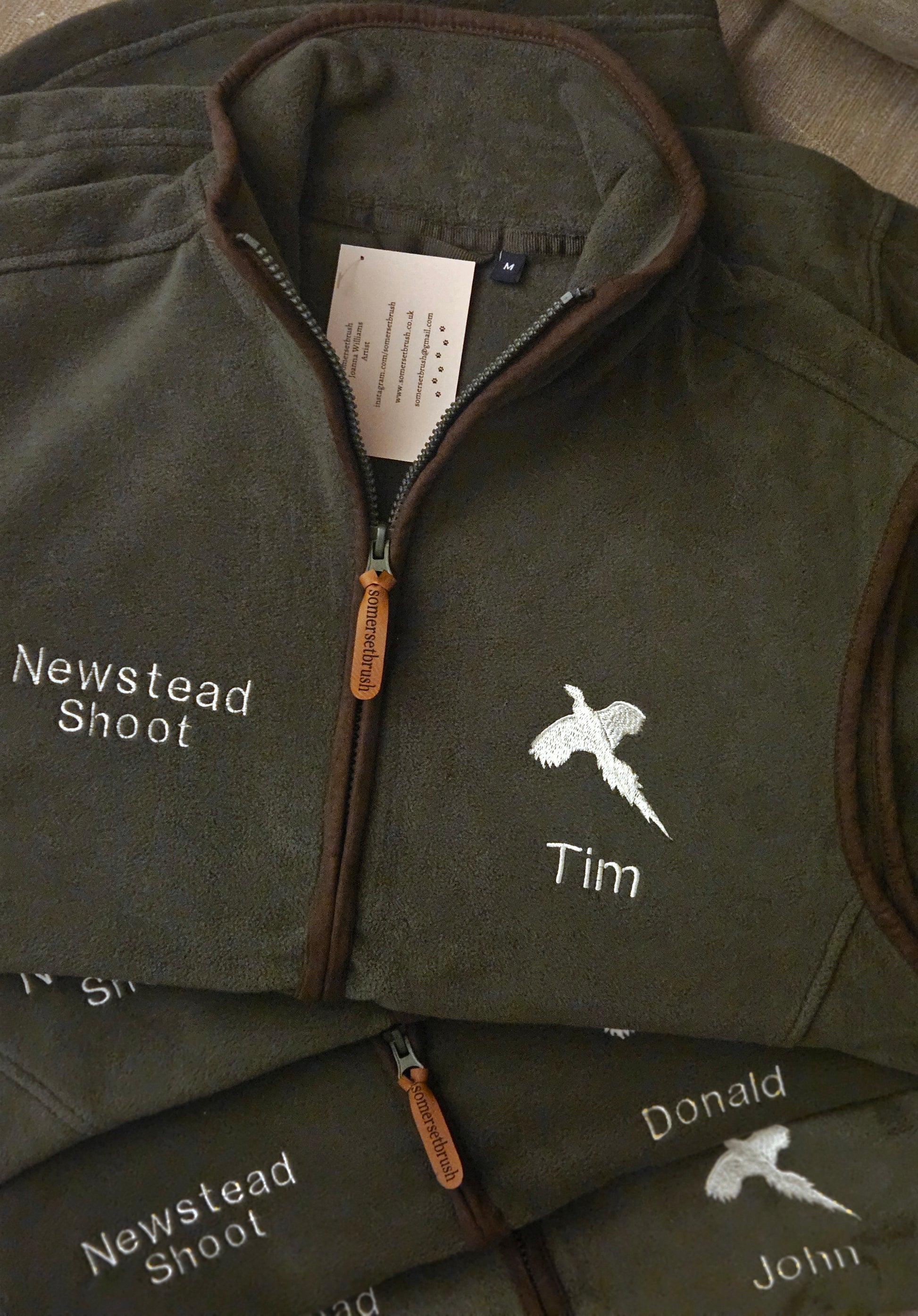 You can also personalise your gilet. Have a name underneath the pheasant for an additional£5 . (please email your TEXT to : Somersetbrush@gmail.com ) with order number.