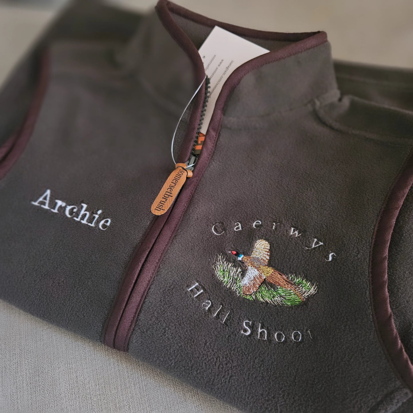 You can also personalise your gilet. Have a name underneath the pheasant for an additional£5 . (please email your TEXT to : Somersetbrush@gmail.com ) with order number.